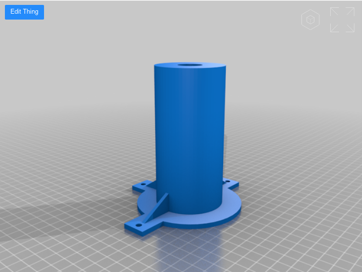 Now, that faucet is designed to go on top of a 5-gallon water cooler bottle. Which is not what we're putting it on top of, so we need to manufacture a fitting. Which means ... on to the 3D printer! You'll need to print this design. If you don't have a 3D printer, I recommend PrintaThing (please do not contact me about printing one for you for hire; that's not a business I'm interested in).